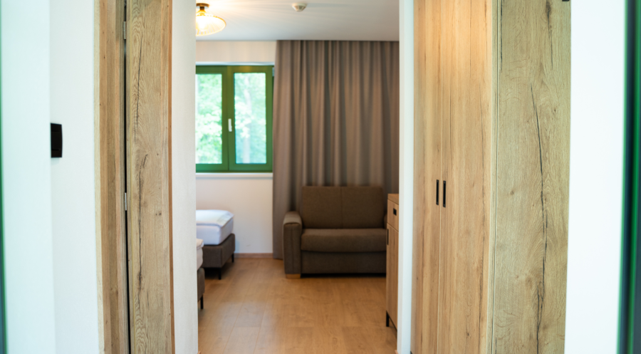 Rodinné izby ponúkajú komfortné ubytovanie pre rodiny s dvomi deťmi. Izba disponuje manželskou posteľou s možnosťou oddelenia postelí. Súčasťou izby je rozkladacie kreslo s úložným priestorom, kde sa komfortne vyspí aj dospelá osoba. Menšie deti majú ubytovania zdarma na zdieľanom lôžku na manželskej posteli. Izba má vlastnú kúpeľňu a spoločnú terasu so sedením. Ideálna voľba pre nezabudnuteľné rodinné pobyty.