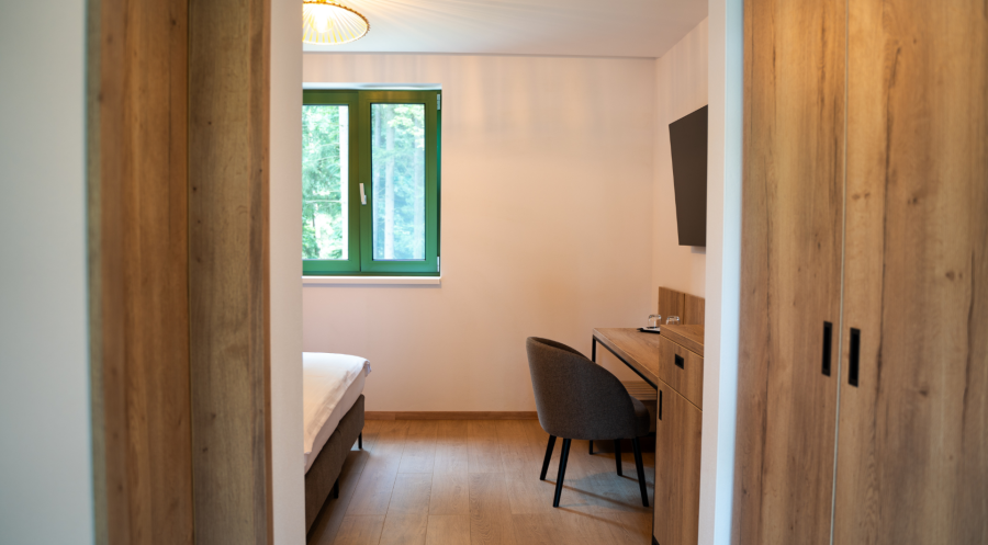 Dvojlôžková izba v Dome Lúč zaujme svojou novotou a moderným dizajnom. Každá izba disponuje možnosťou oddelenia postelí, vlastnou kúpeľňou so sprchou a WC, a spoločnou terasou s vlastným sedením. Izba je vhodná pre páry, ale aj trojčlenné rodinky s jedným dieťaťom na zdieľanej manželskej posteli. Užite si príjemný pobyt v krásnom, úplne novom a čistom prostredí.